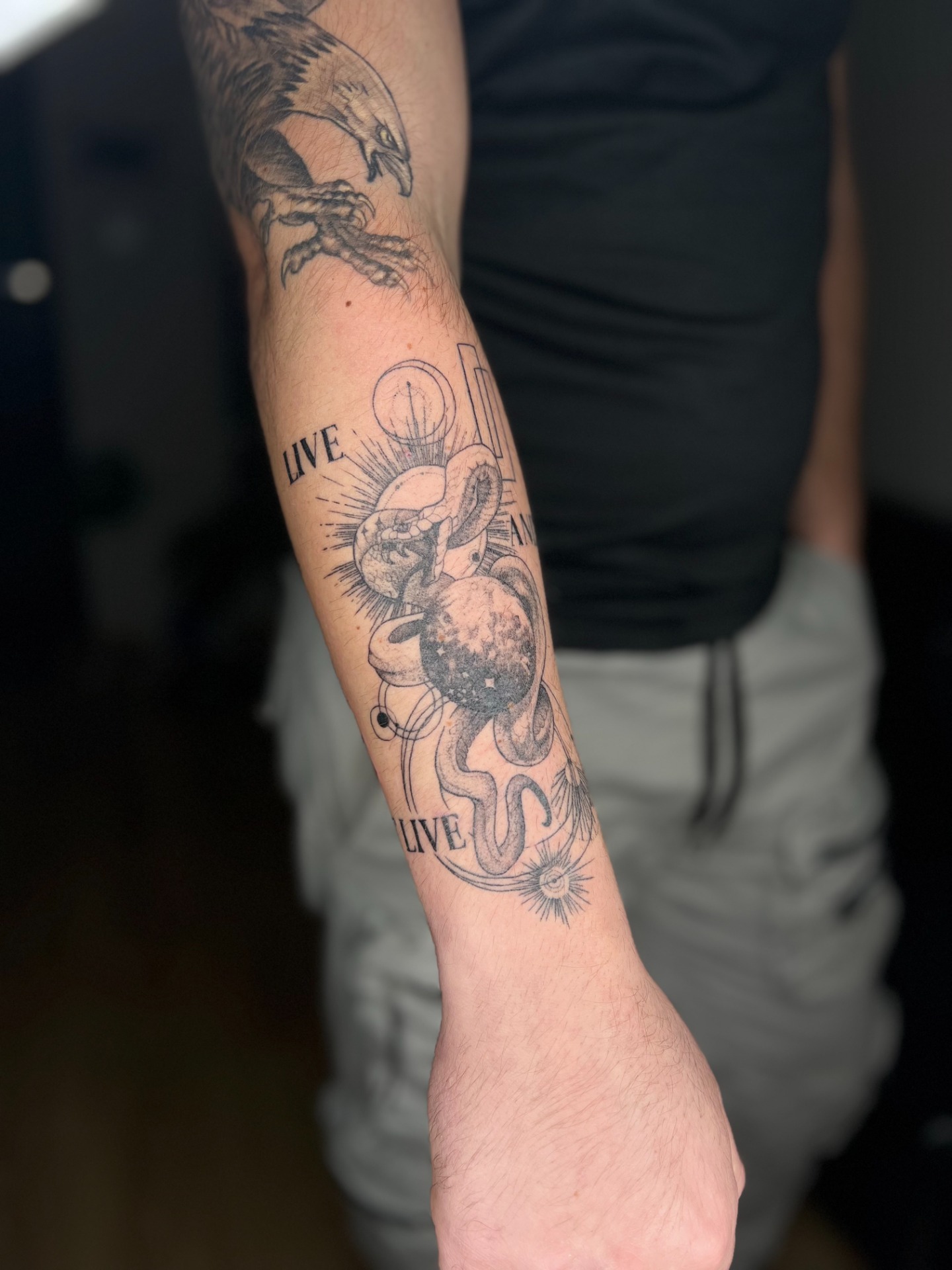 Vo svojej tvorbe sa najčastejšie venujem fine line štýlu, jemným tieňom a mikrorealistike. Blízke sú mi najmä motívy prírody, zvierat a symbolika, ktorá nesie trochu mystickú, "witchy" energiu. Práve tieto prvky mi umožňujú spojiť technickú precíznosť s intuitívnou tvorbou a vytvárať tetovania, ktoré sú jemné, ale zároveň silné vo svojom význame.